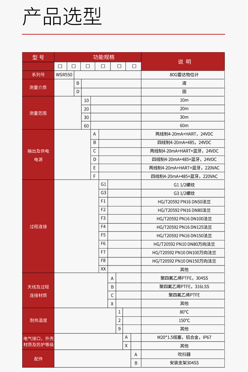 产品名称:美仪_WSR550雷达物位计 _80GHz_高精度_支持蓝牙调试_