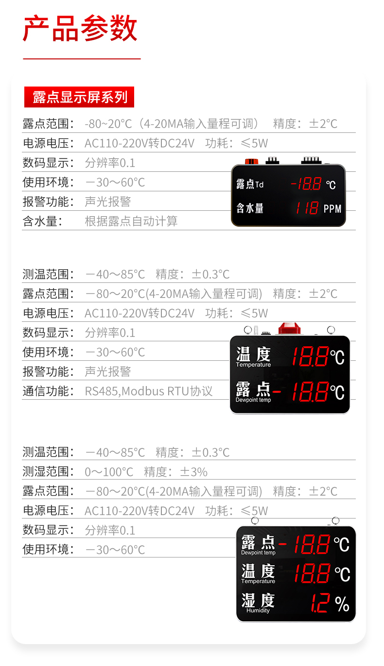 产品描述:美仪_工业露点仪传感器温湿度压差显示屏在线声光报警