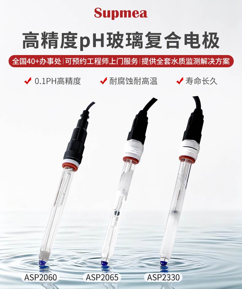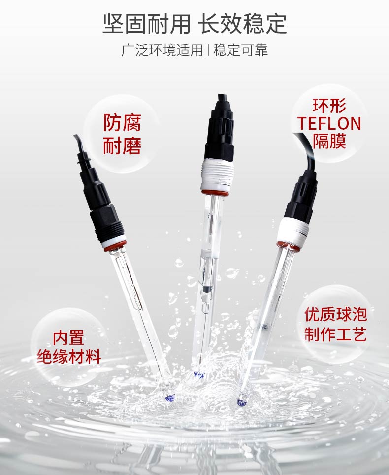 产品描述:pH 玻璃电极是由玻璃指示电极和银/氯化银参比电极组合在一起的复合电极,作为 pH 值测量传感器广泛应用于测量水溶液中的 pH 值。使用场景:自来水、地表水、综合废水等。