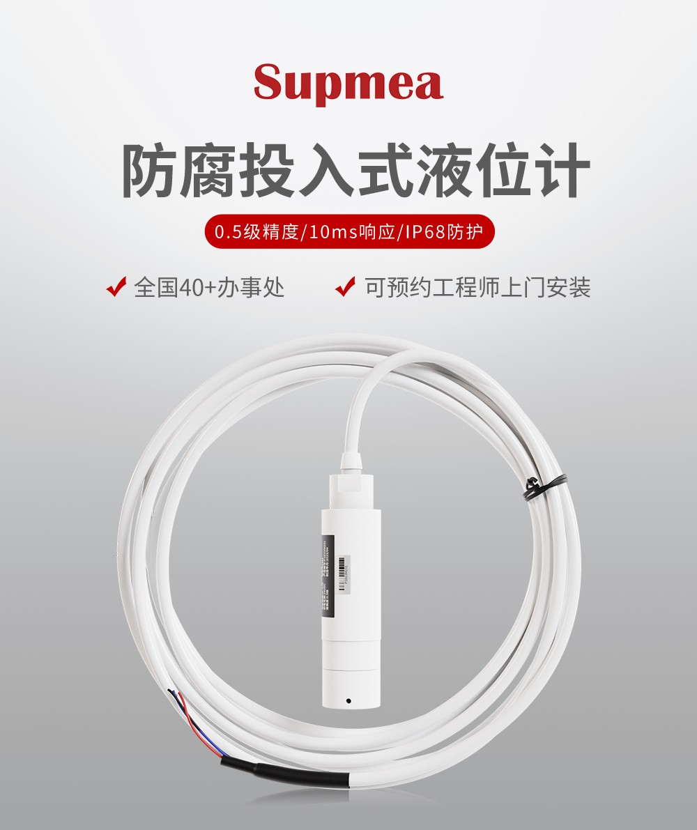 产品描述:防腐投入式液位变送器由高性能陶瓷压力传感器作为测量元件,把与液位深度成正比的液体静压力准确的测量出来,并经过信号调理电路转换成标准的电流、电压或 RS485 信号输出,建立起输出信号与液位深度的线性对应关系,实现对液体深度的测量。产品采用聚四氟乙烯防腐材质,具有优良的耐腐蚀性能,广泛适用于化工厂酸、碱性等腐蚀介质的液位测量。