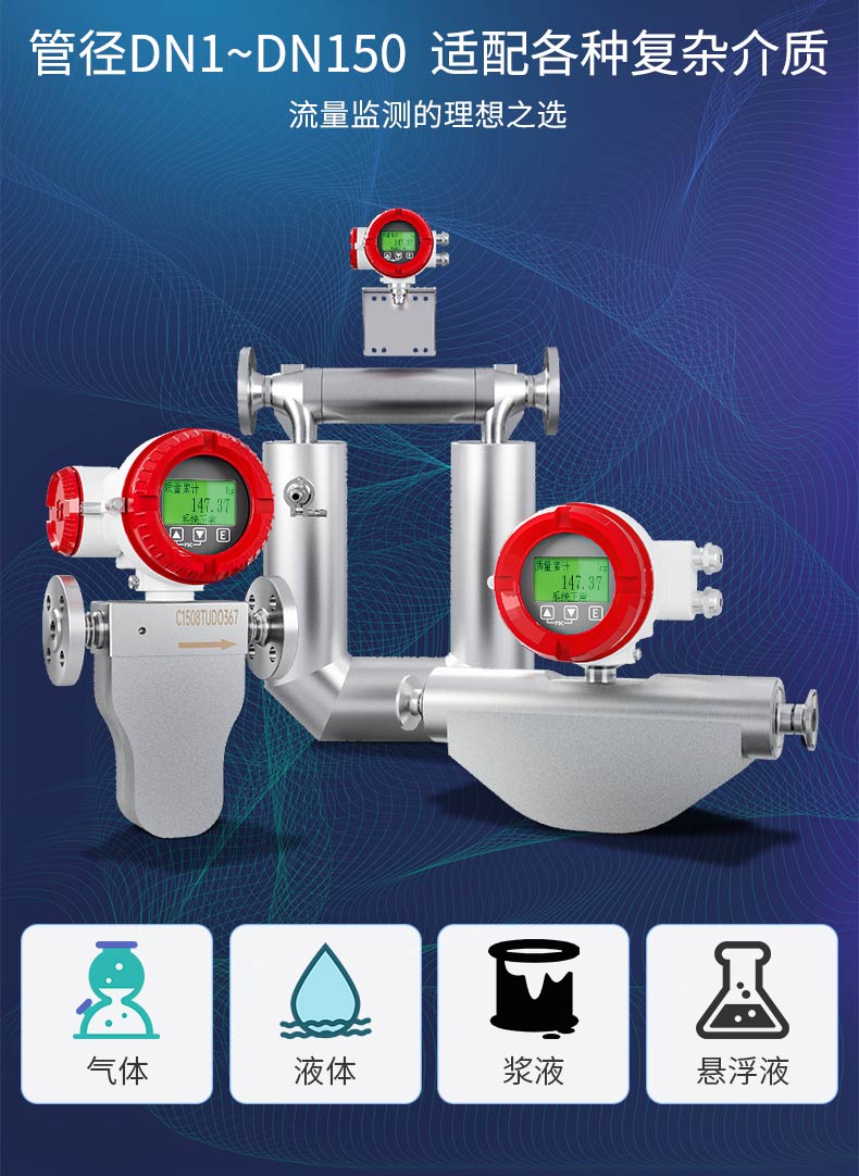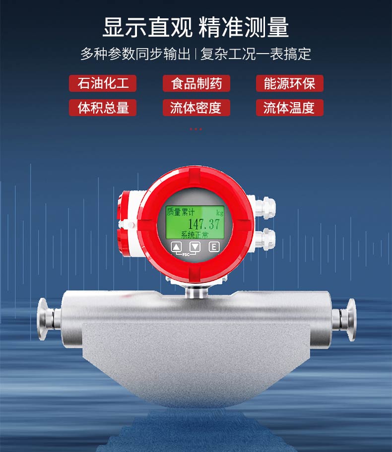 产品描述:科里奥利质量流量计是根据科里奥利力原理开发的一种新型的流量测量仪表,可直接测量封闭管道内流体的质量流量、介质的密度和温度。可广泛应用于化工、石油、食品、制药、造纸等行业。