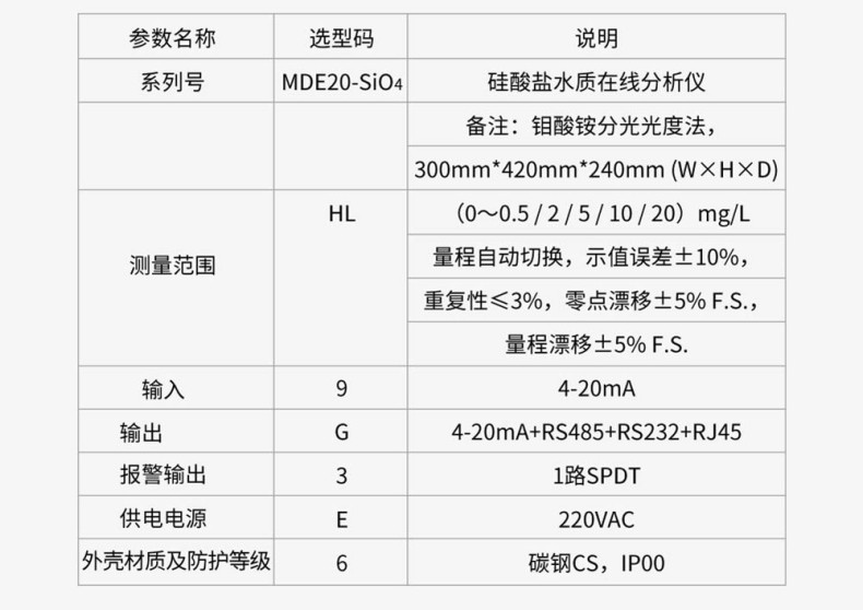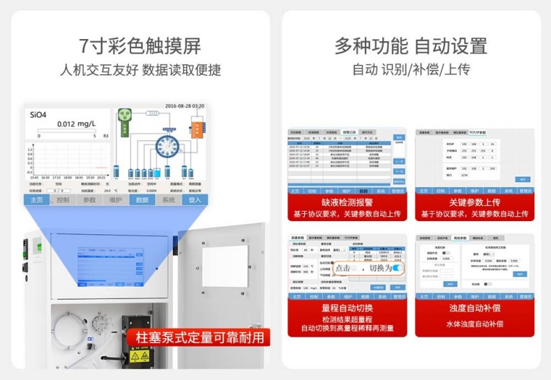 产品名称:美仪-硅酸盐水质监测仪-彩色触屏、关键参数自动上传